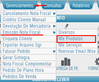 Clique em Gerenciamentos > Faturar pedido > Produtos