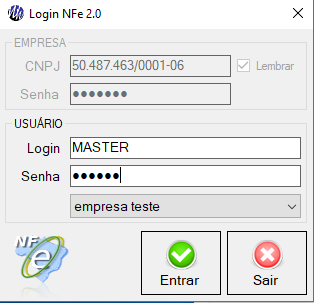 8 – Digite o CNPJ e a senha da empresa clique em entrar em seguida digite seu usuário e clique em entrar novamente.