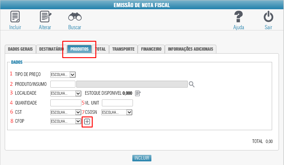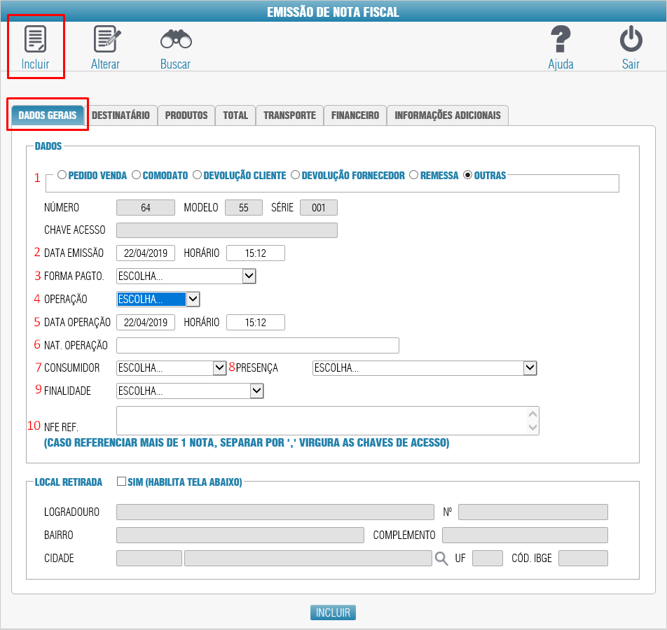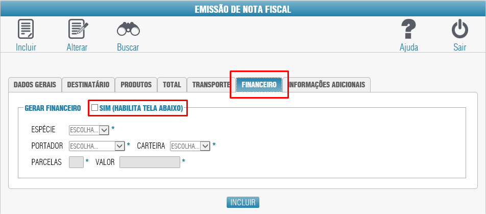Primeiro clicamos no Incluir para habilitar os campos.