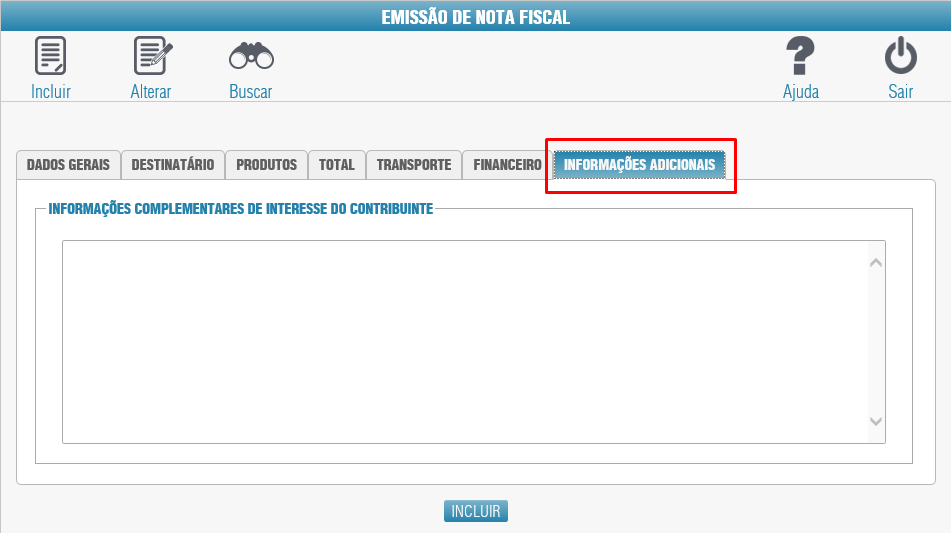 Aba Informações Adicionais