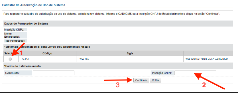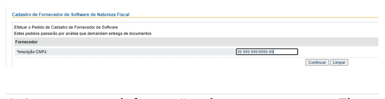 4 - Em seguida, adicione o seu CNPJ no campo destacado abaixo e clique em "Continuar".